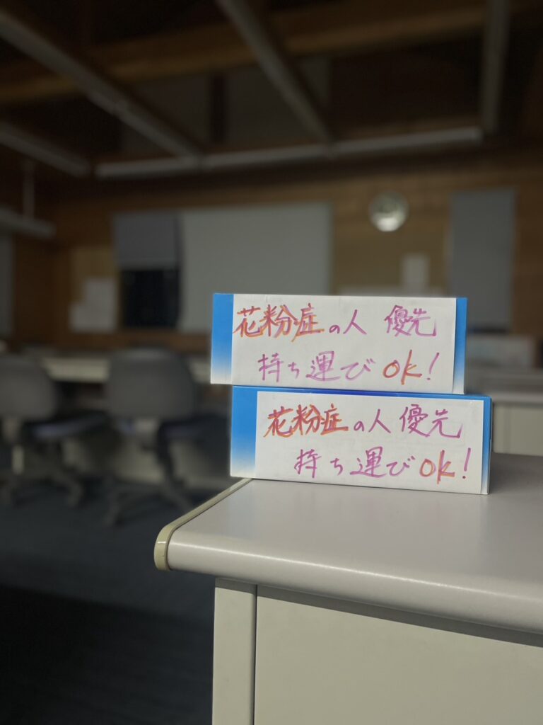 また、花粉症の生徒さん用の柔らかいティッシュを準備しました!